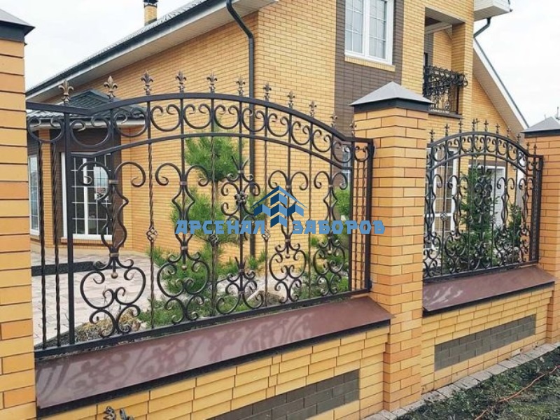 Кирпичный забор с ковкой 6 соток