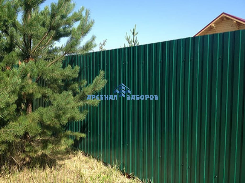 Конструкция забора из профлиста на ленточном фундаменте и с кирпичными столбами