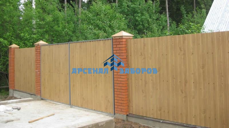 Конструкция забора из профлиста на ленточном фундаменте и с кирпичными столбами