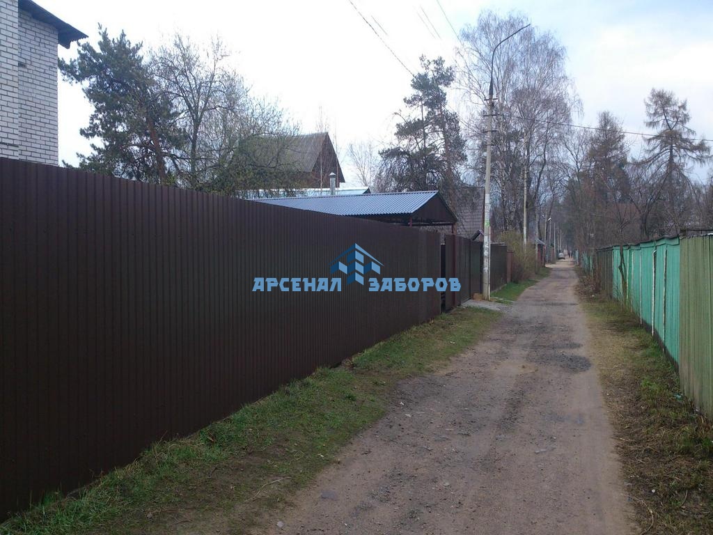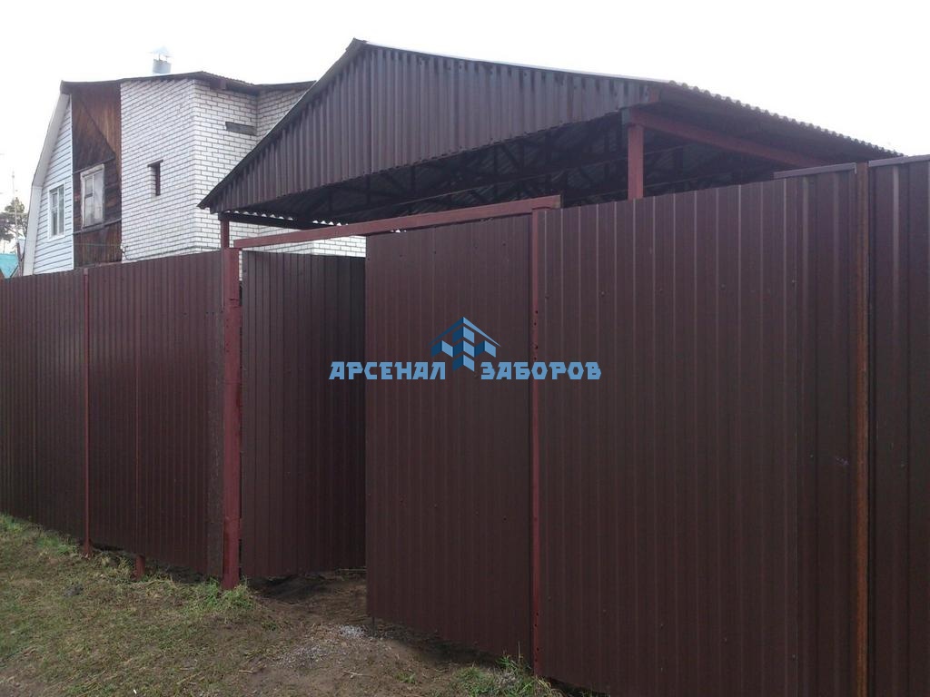 Конструкция забора из профлиста на ленточном фундаменте и с кирпичными столбами