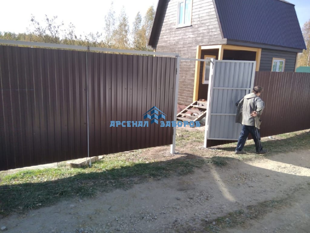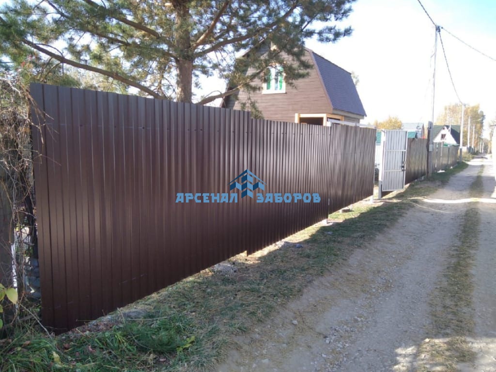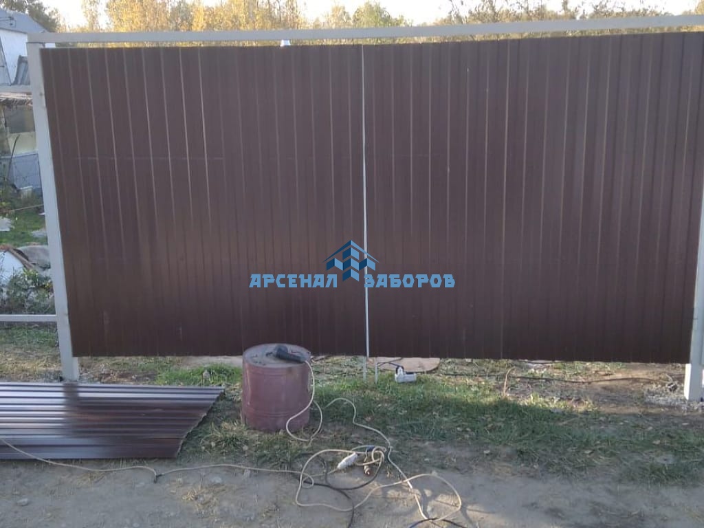 Конструкция забора из профлиста на ленточном фундаменте и с кирпичными столбами