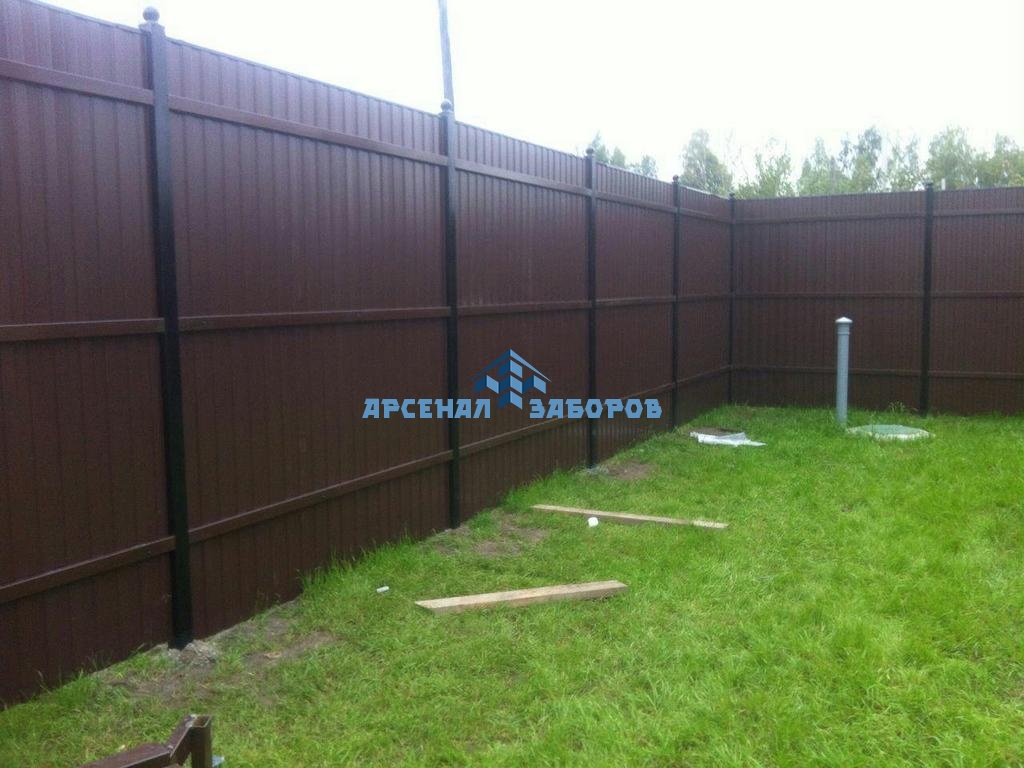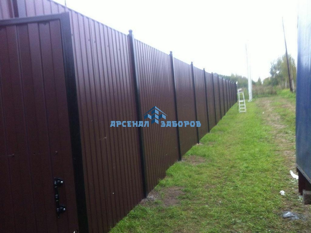 Конструкция забора из профлиста с забивными столбами