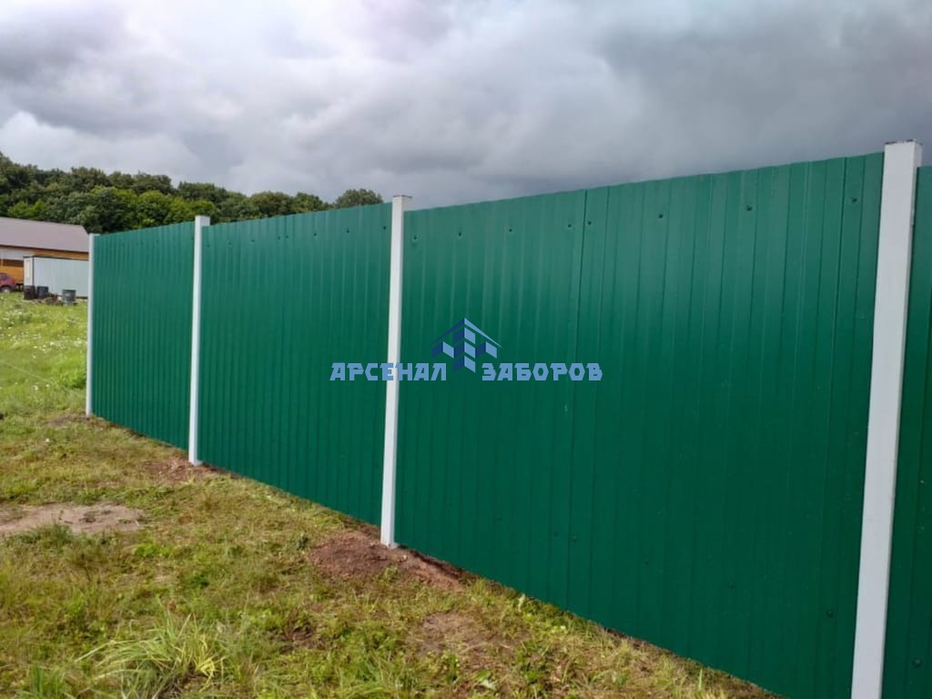 Конструкция забора из профлиста на ленточном фундаменте и с кирпичными столбами