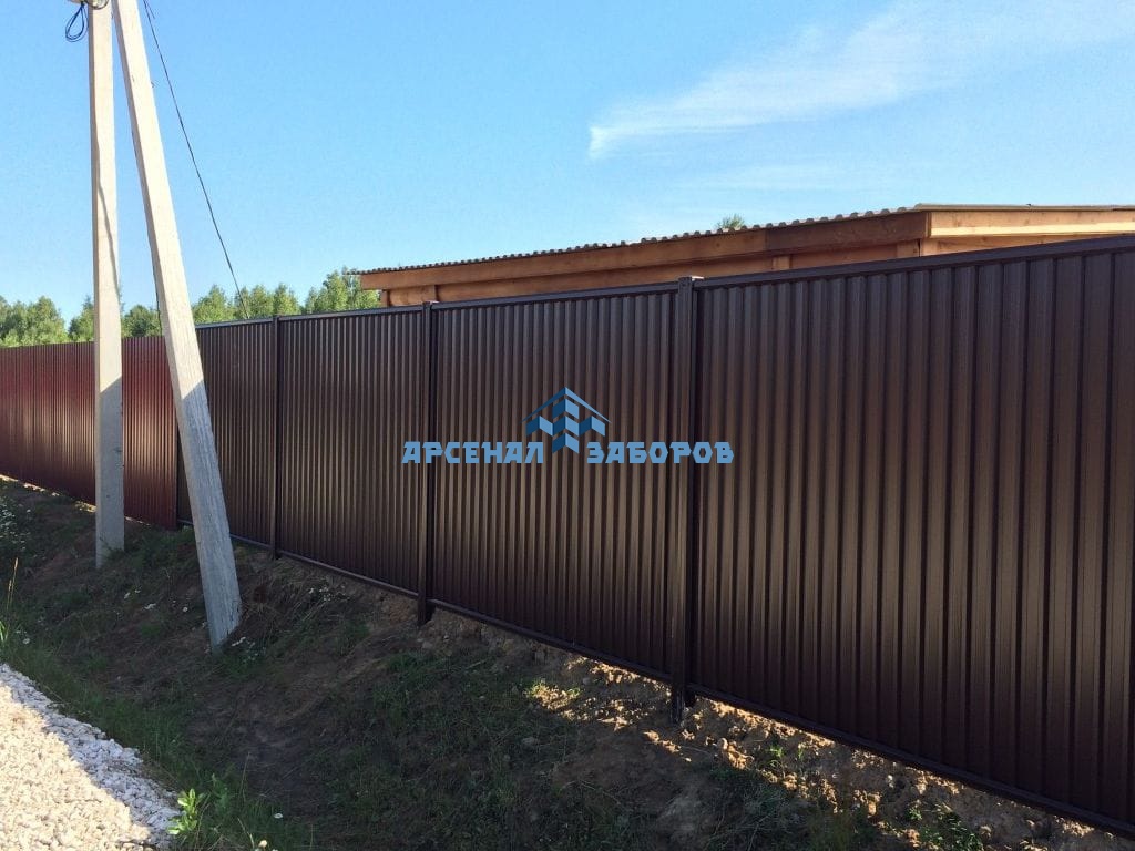 Забор из профнастила с забивными столбами 50 метров