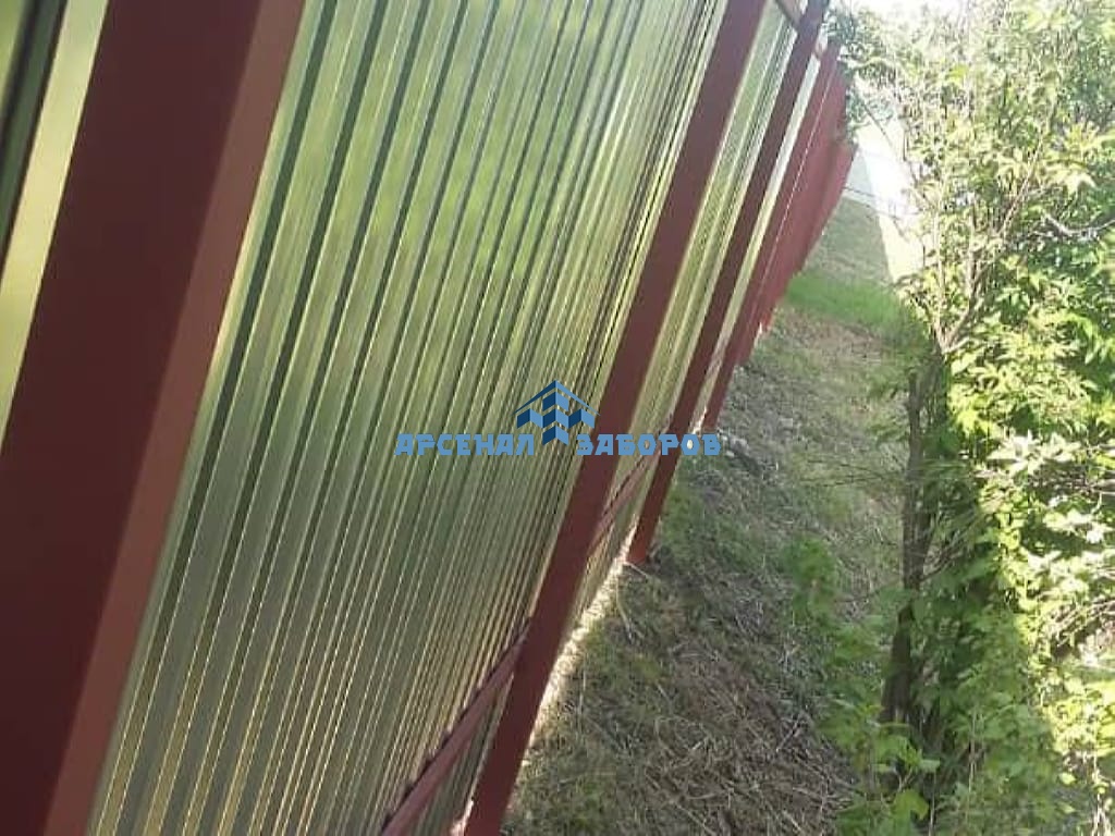 Конструкция забора из профлиста на ленточном фундаменте и с кирпичными столбами