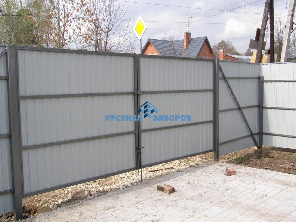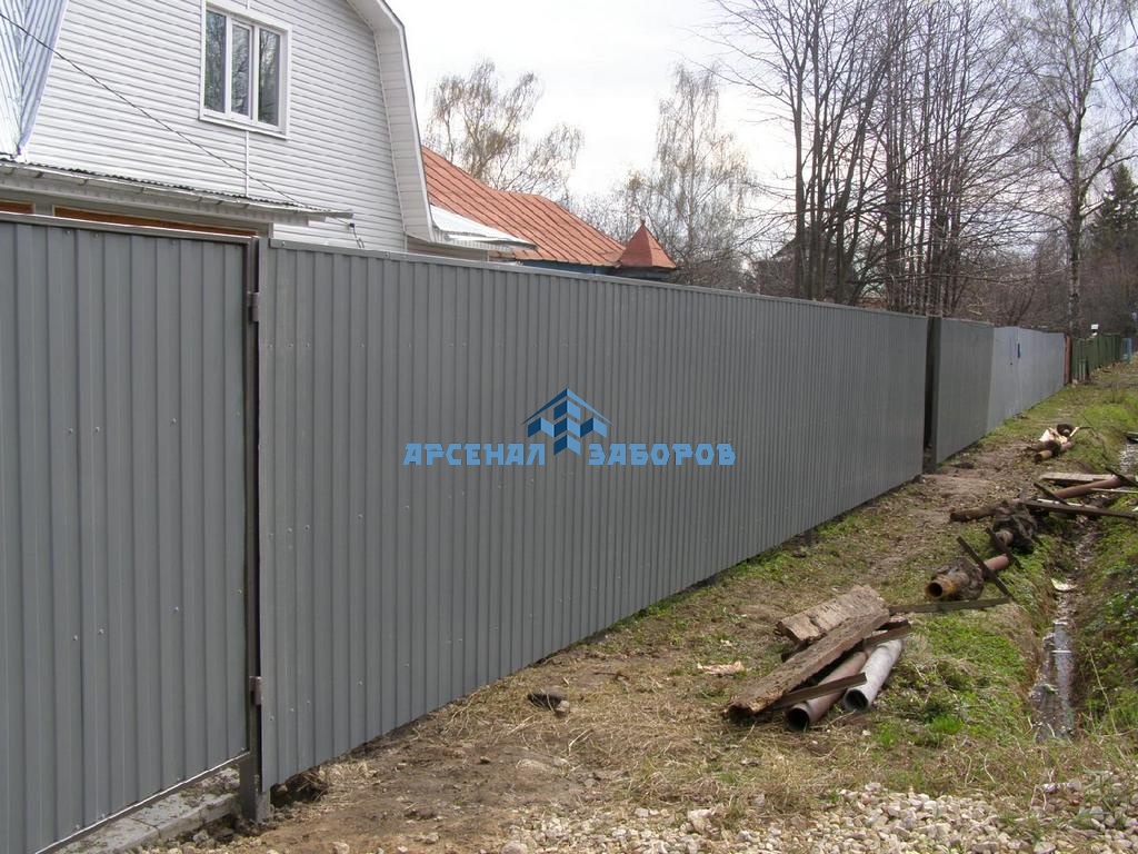 Конструкция забора из профлиста с забивными столбами