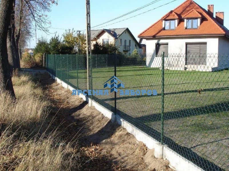 Конструкция забора из сетки-рабицы с протяжкой арматурой